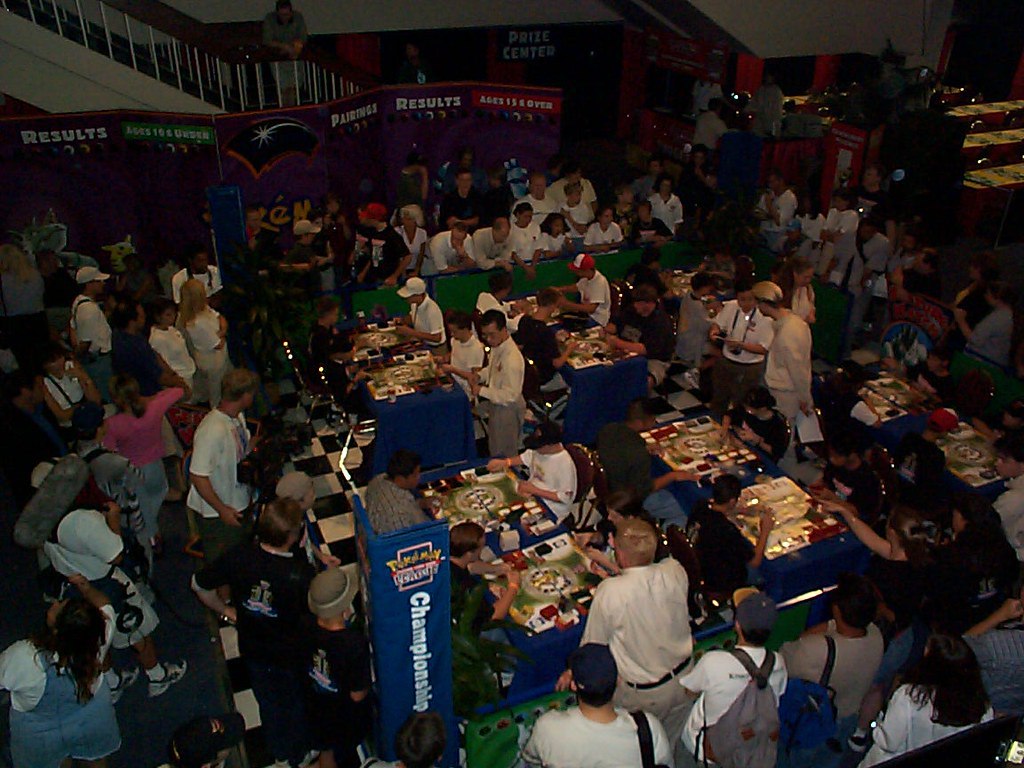 In July 2000, Wizards of the Coast hosted their first of four Super Trainer Showdown events. This was the first major international event for the Pokémon TCG, and it drew over 6000 fans from around the world. Unfortunately, space was limited aboard The Queen Mary ship the event was hosted on, and less than 1000 were permitted on it to play. Just as they are today, players were separated into three age divisions: 10–, 11–14 and 15+. They would battle in the Base–Rocket format.